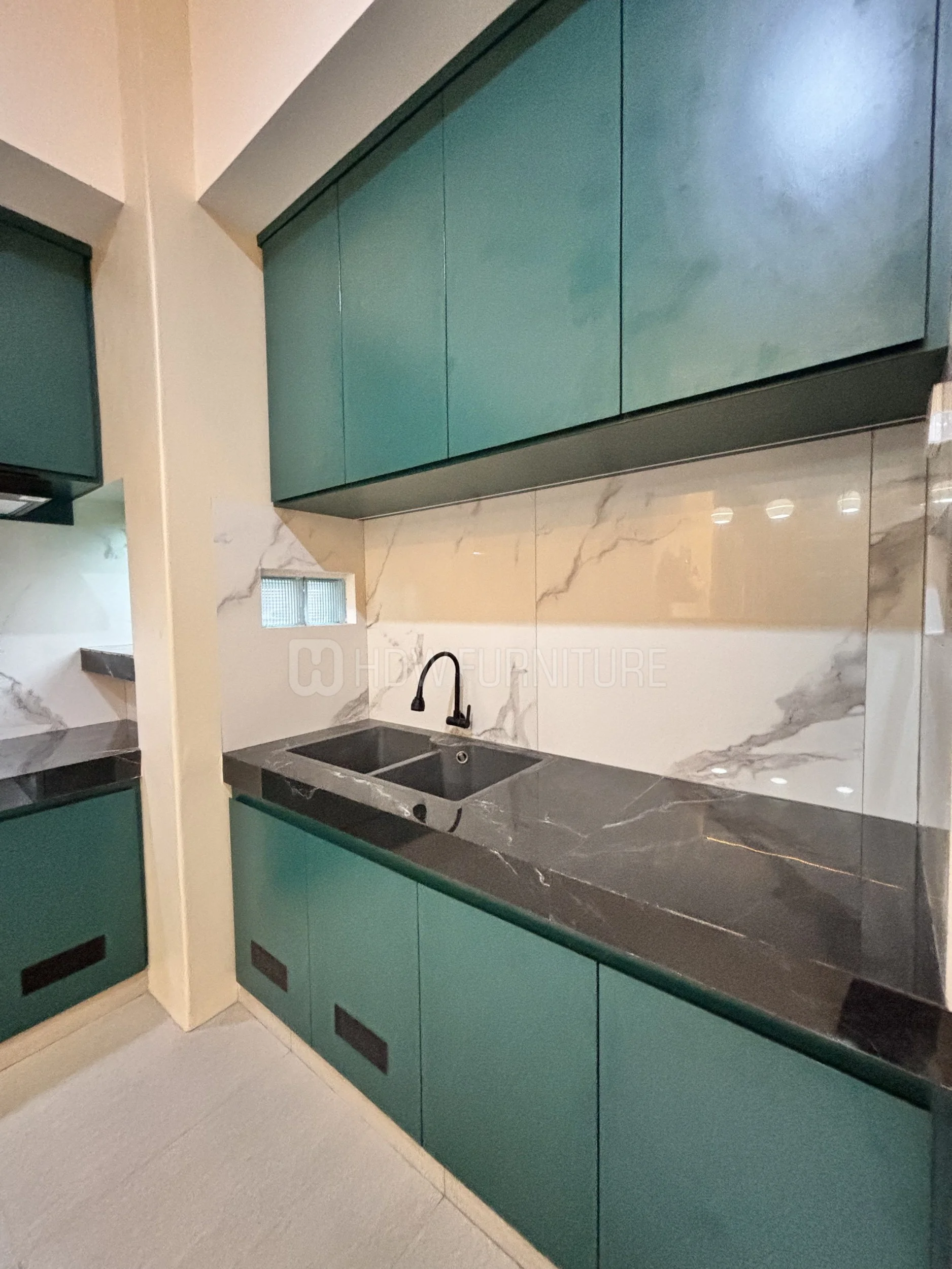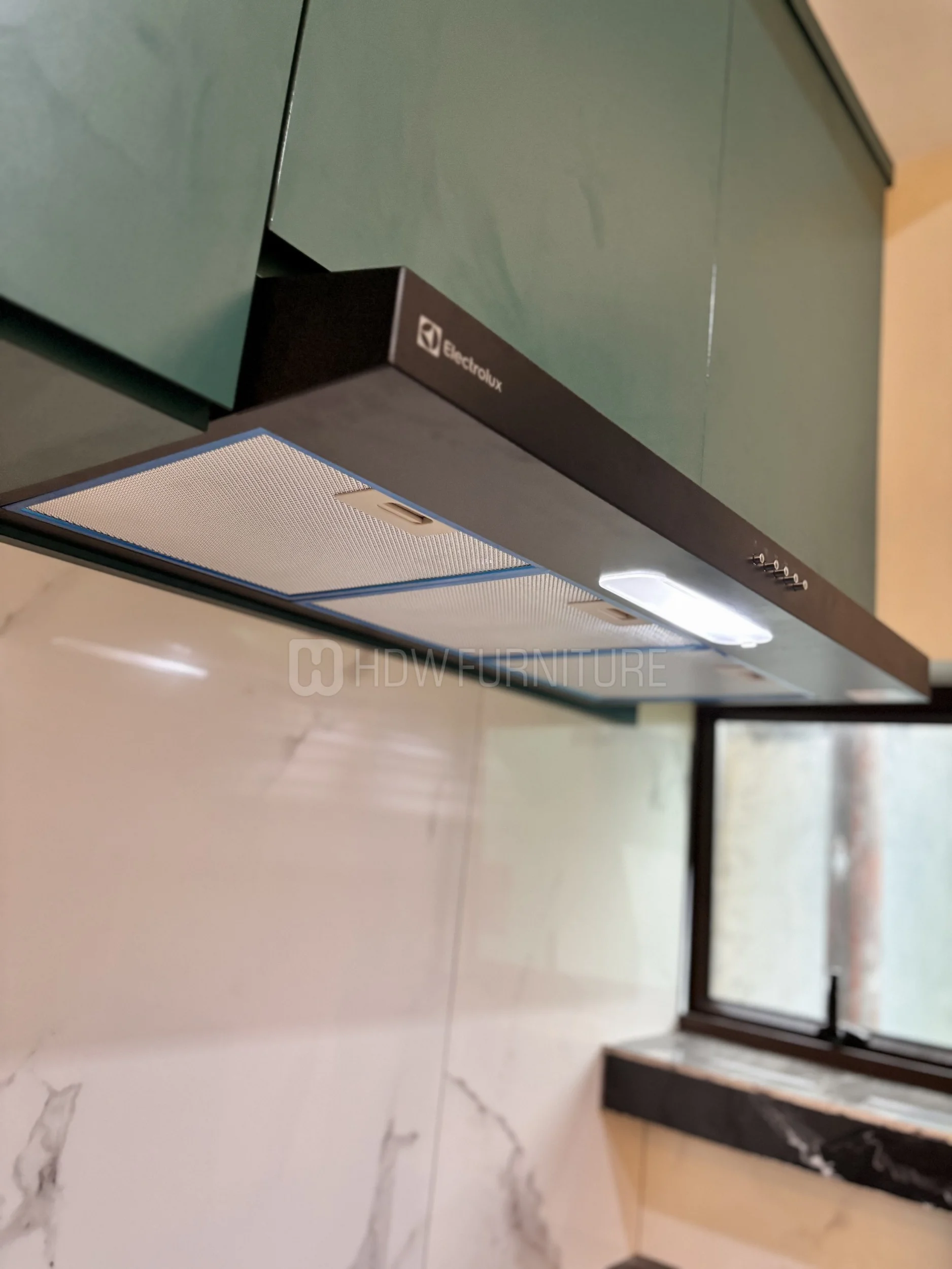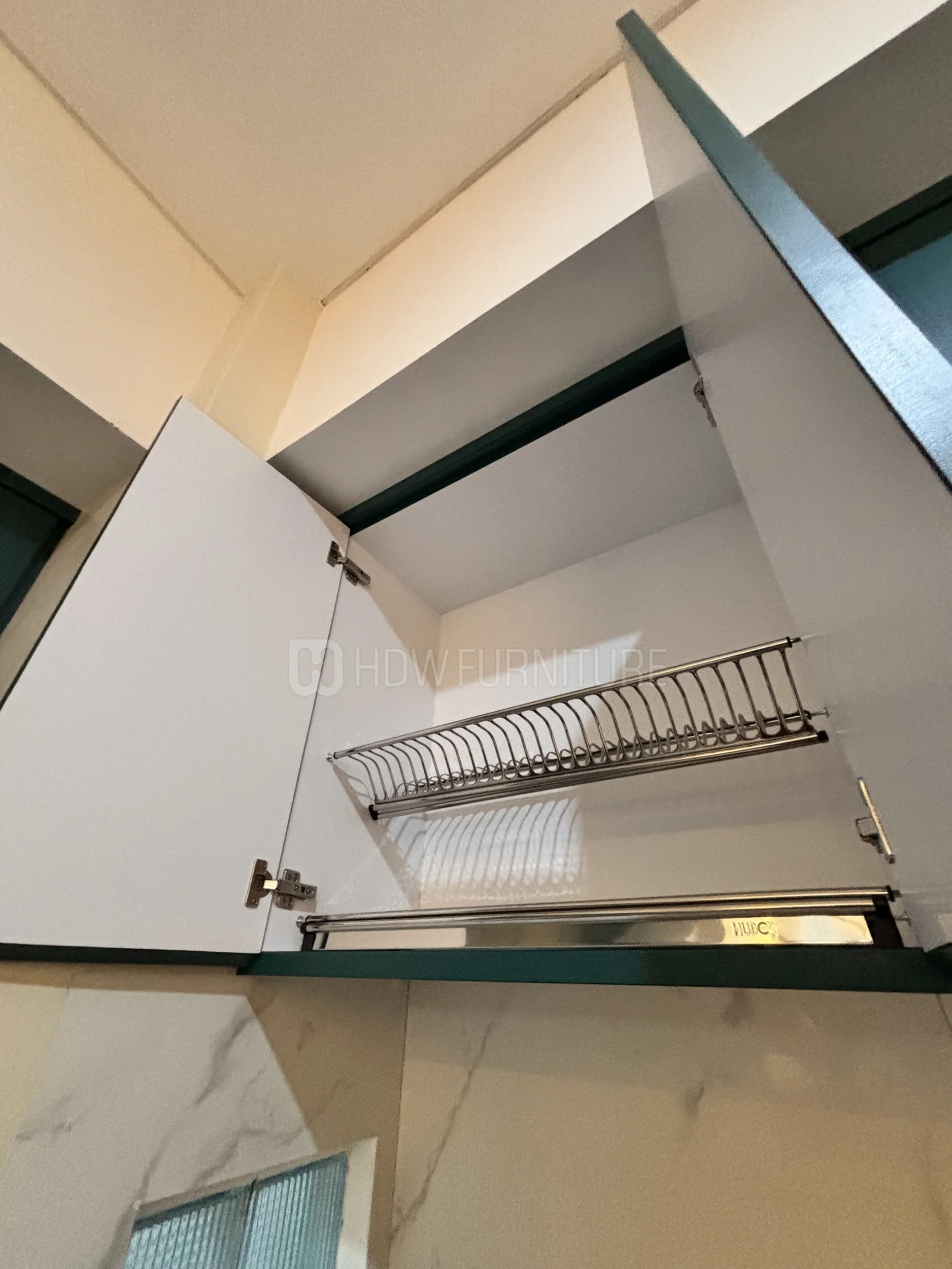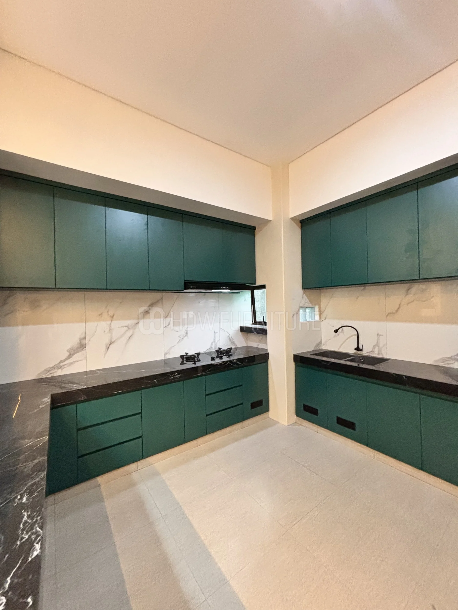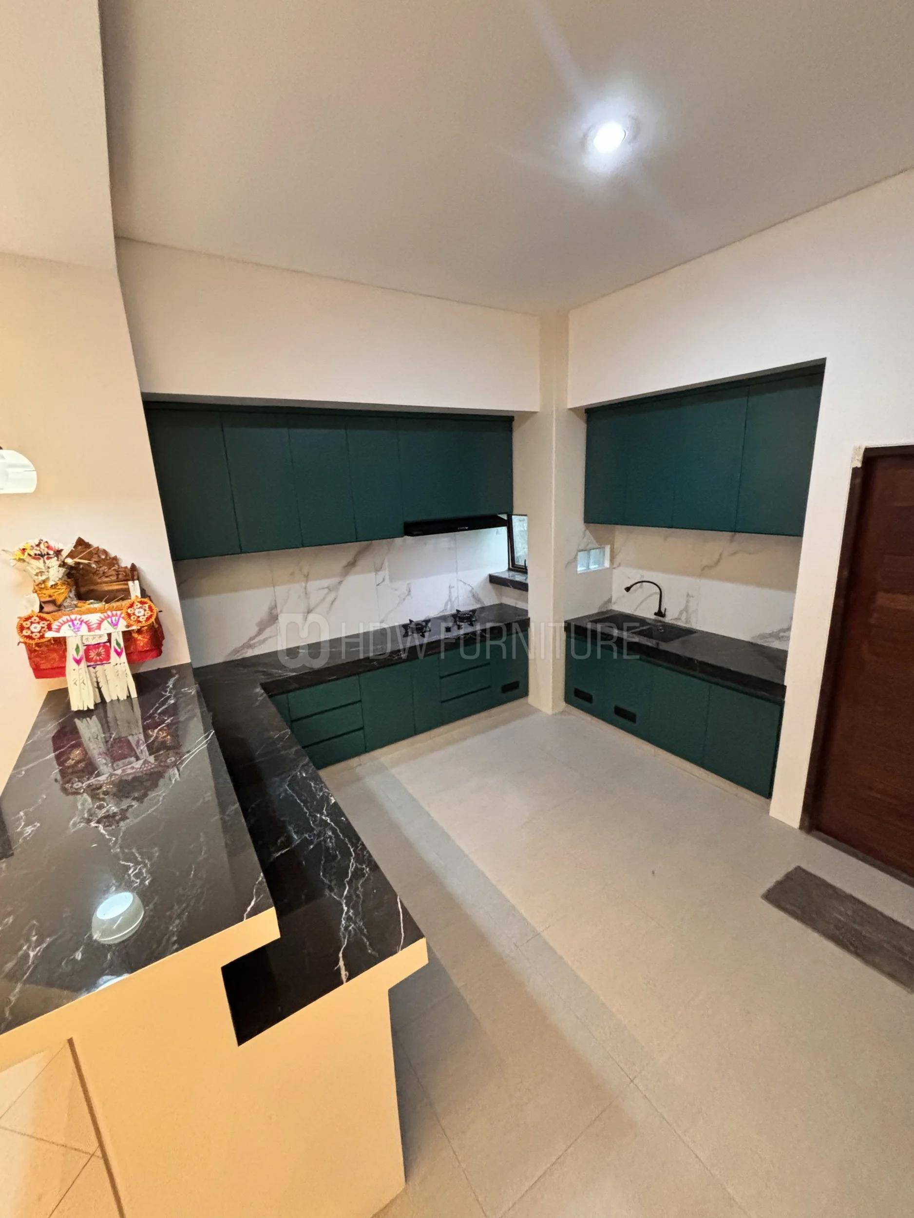 Masuk ke kabinet. Warna hijau tua ini cakep sih—nggak terlalu mencolok, tapi tetap punya karakter. Finishing-nya juga matte, jadi kelihatan lebih modern dan elegan.